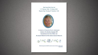 From here you are able to play or download the video of the service celebrating the life of Sr Joyce-Mary Fryer osm, held on 6th November 2025 at St Catherine's Catholic Church, Littlehampton.